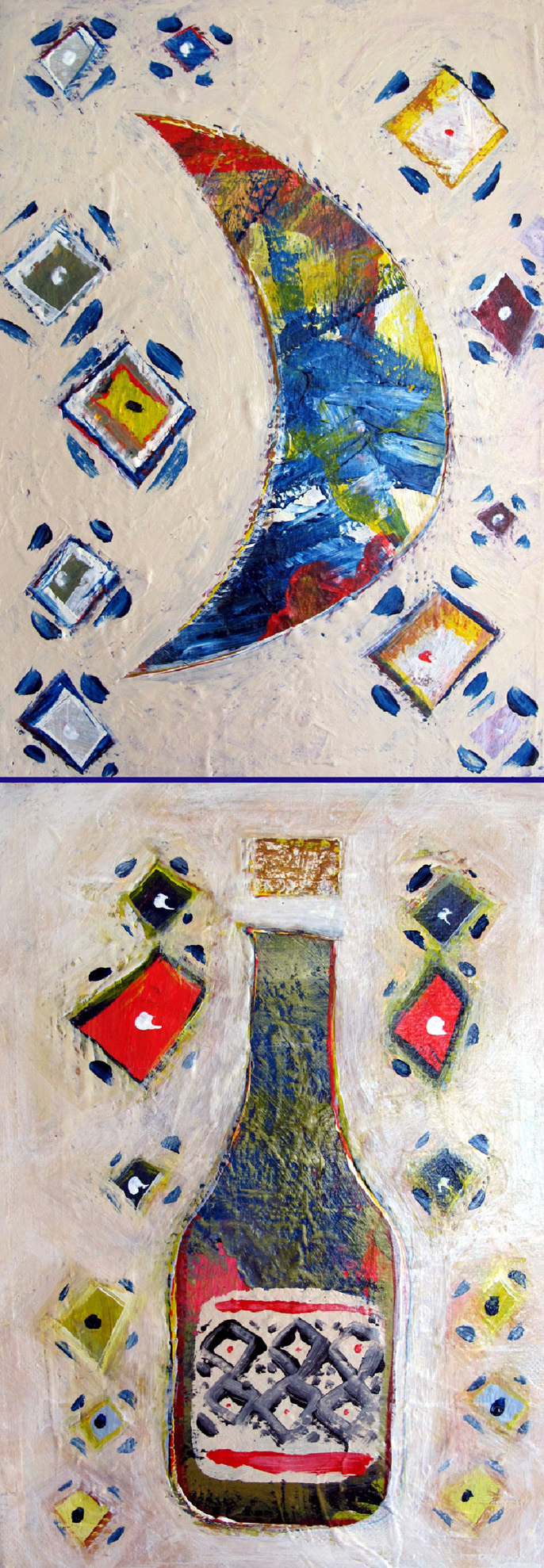 ○タイトル : 乾杯 ○製作年 : 2012○サイズ : 22.7cm×15.8cm×2 キャンバス○画材 : アクリル絵の具○エピソード : 月とワイン個人的に気持ちの良いコンビネーション。