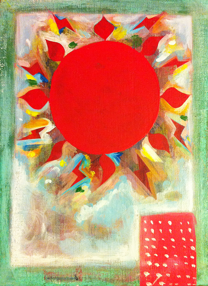 ○タイトル :愛してる○製作年 : 2014○サイズ : 33.3cm×24.2cm キャンバス○画材 : アクリル絵の具○エピソード : 太陽なしの人生は考えられない