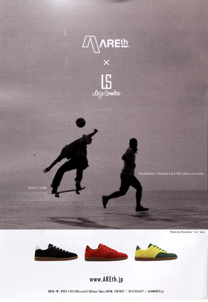 ○タイトル : アース × ルズ 広告 ○製作年 : 2013○スポット : 鹿児島○トリック : スケート & フットサル セッション○フォト : ライ○エピソード : AREthとLSのコラボシューズの広告。 GIRLっぽいのがお気に入り。