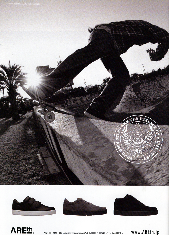 ○タイトル : アース広告○製作年 : ラップオーバー2012.02号○スポット : 千葉○トリック : バックサイドリップスライド○フォト : カンビン○エピソード : ミット君のアイデアで太陽とのセッション。みなさん最高の瞬間をありがとう