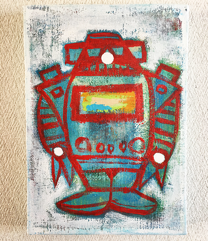 ○タイトル : BOROT○製作年 : 2020○サイズ : 22.7cm×15.8cm キャンバス○画材 : アクリル絵の具○エピソード : BOROT