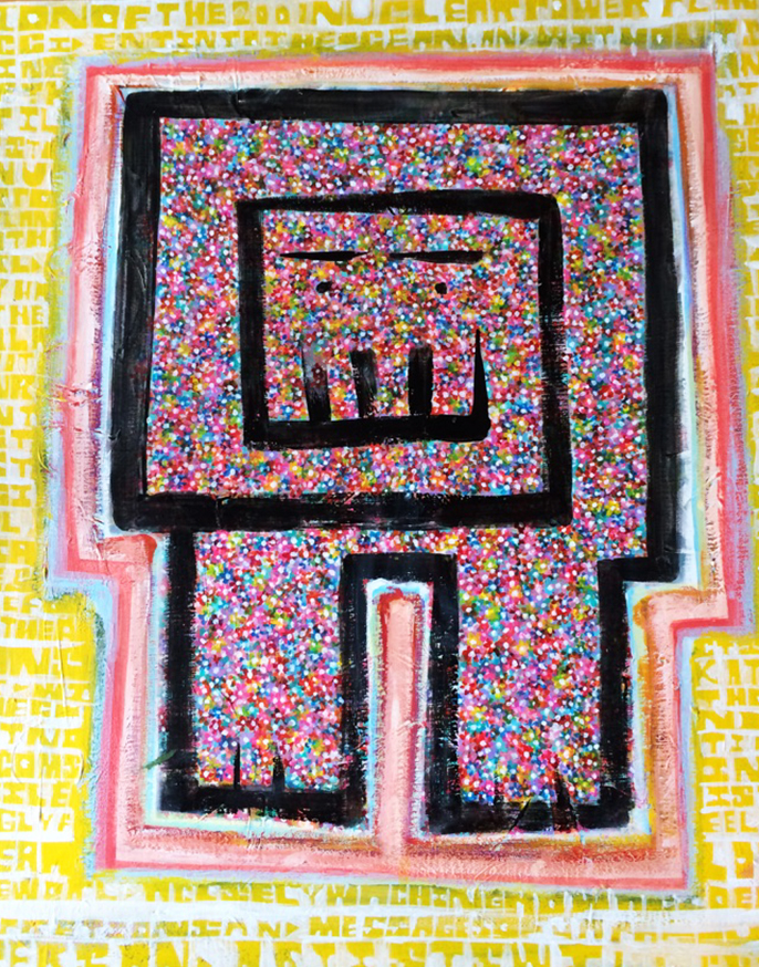 ○タイトル : 花とジャイオン(花 ようこ)○製作年 : 2015○サイズ : 80.3cm×65.2cm キャンバス○画材 : アクリル絵の具○エピソード : 嫁とのセッション作品。