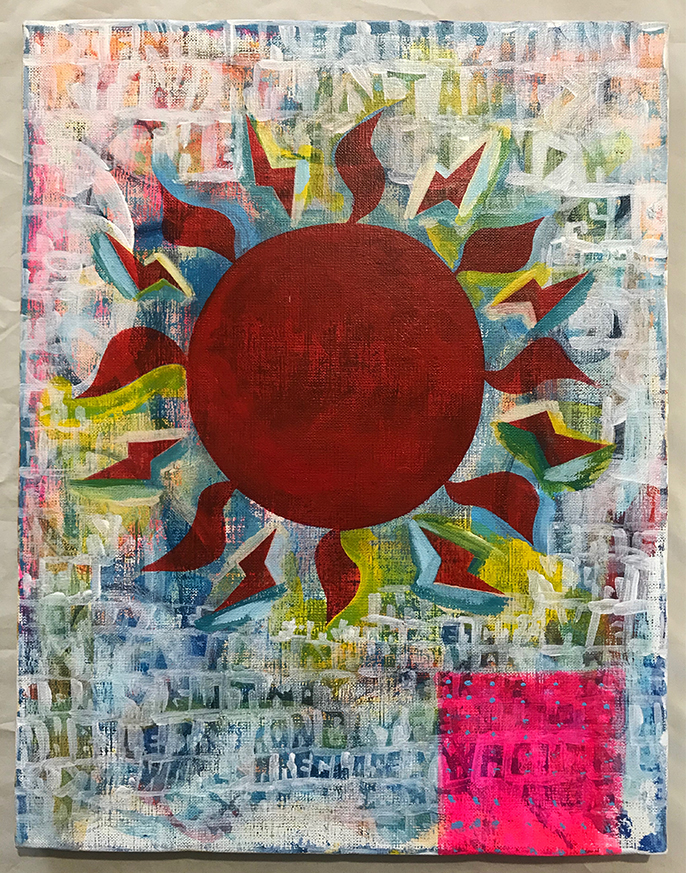 ○タイトル : 感じよう○製作年 : 2014○サイズ : 45.5cm×38.8cm キャンバス○画材 : アクリル絵の具○エピソード : 感じよう