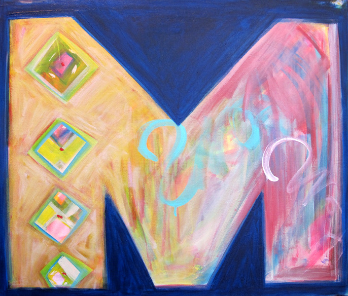 ○タイトル : エム○製作年 : 2013○サイズ : 53.0cm×45.5cm キャンバス○画材 : アクリル絵の具○エピソード :12cafeでのjahi作品展示開催中に、フルネームにMが3つ入る方から依頼された作品
