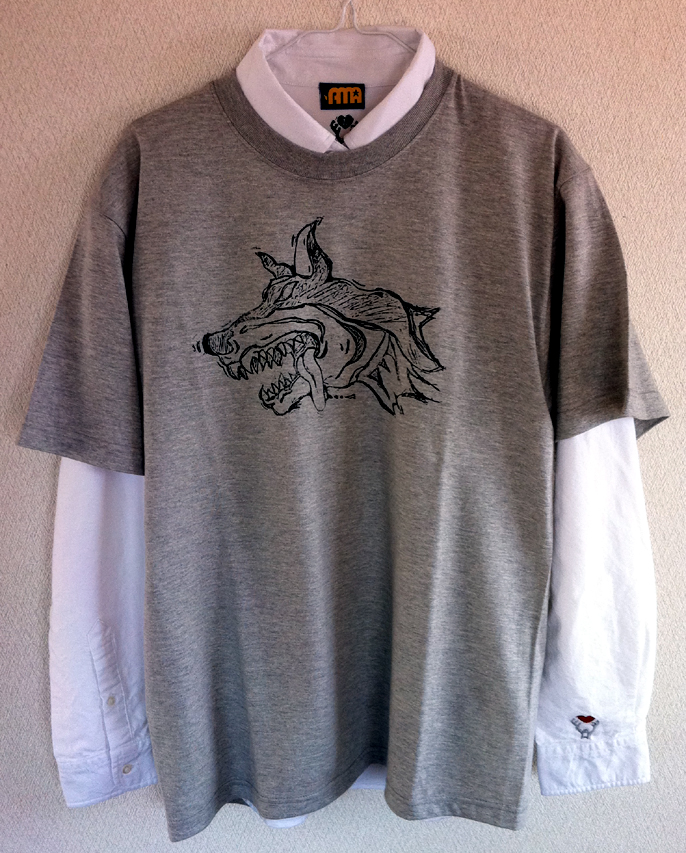 ○ デザイン : 野良犬ヘッド (写真 グレーティーシャツ)