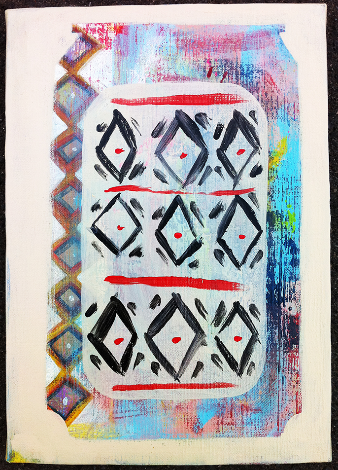 ○タイトル : OLLI beer○製作年 : 2014○サイズ : 33.3cm×24.2cm キャンバス○画材 : アクリル絵の具○エピソード : 熊本の仲間ILL-Oのskate shop"OLLI"のOでもある。 http://ollikumamoto.com