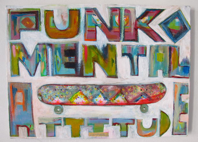 ○タイトル : パンク メンタル アティトュード ○製作年 : 2013○サイズ : 33.3cm×24.2cm キャンバス○画材 : アクリル絵の具○エピソード : パンク メンタル アティトュード 言葉からも感じれる精神的な作品。