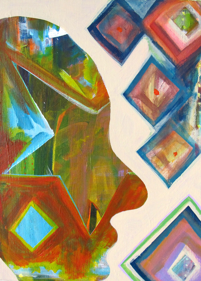 ○タイトル : スケートボーダー ○製作年 : 2013○サイズ : 33.3cm×24.2cm キャンバス○画材 : アクリル絵の具○エピソード : スケートボーダーの内なる秘めた精神のイメージ。