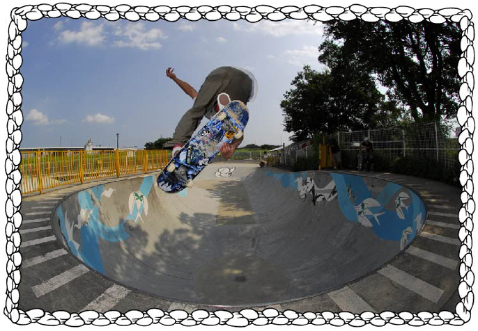 ○ エピソード : スノーボーダーでありミュージシャンであり絵書きでもある熱い男247と、アースクルーでありノースフェースのライダーでもある鬼の逆輸入スノーボーダーG.Kの雑誌ハンドからのイラスト入りライディングショットの依頼。247やG.Kとは一緒に絵を書いたり、滑ったり、パーティーしたりツアーを回ったりしてきた。今回もいつもどおりな感じでやらせて頂きました。