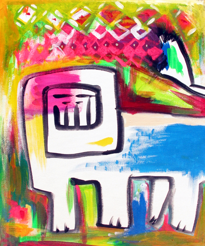 ○タイトル : ジャイオン○製作年 : 2010○サイズ : 53.0cm×45.5cm キャンバス○画材 : アクリル絵の具○エピソード : オリジナルキャラクター"ジャイオン"誕生。2010年京都、中川酒店”GOYA”にて自身初の個展を開催した時のフライヤーに使った作品。