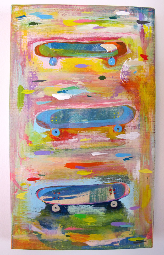 ○タイトル:トレード○製作年:2014○サイズ:27.3cm×16.0cm キャンバス○画材:アクリル絵の具○エピソード:仲間と熱いトレードをした作品